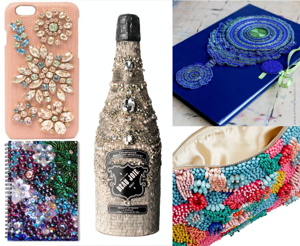 There is room for luxuriously beaded coffee cuffs, key-chains, passport covers, laptop sleeves, eye-wear cases, champagne bottle covers (they count as essentials), the list is never-ending. Choose your design and personalise them, after all, that’s the best thing about all things hand-made!