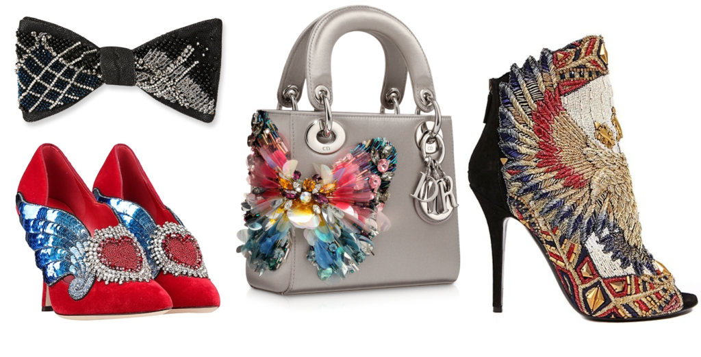 Hand-embroidered shoes and bags are not so new but we are loving how the techniques used are constantly evolving. Also added to the list are edgy bow-ties, brooches, scarves, belts, shawls, hats and whatever other piece of accessory one can think of.